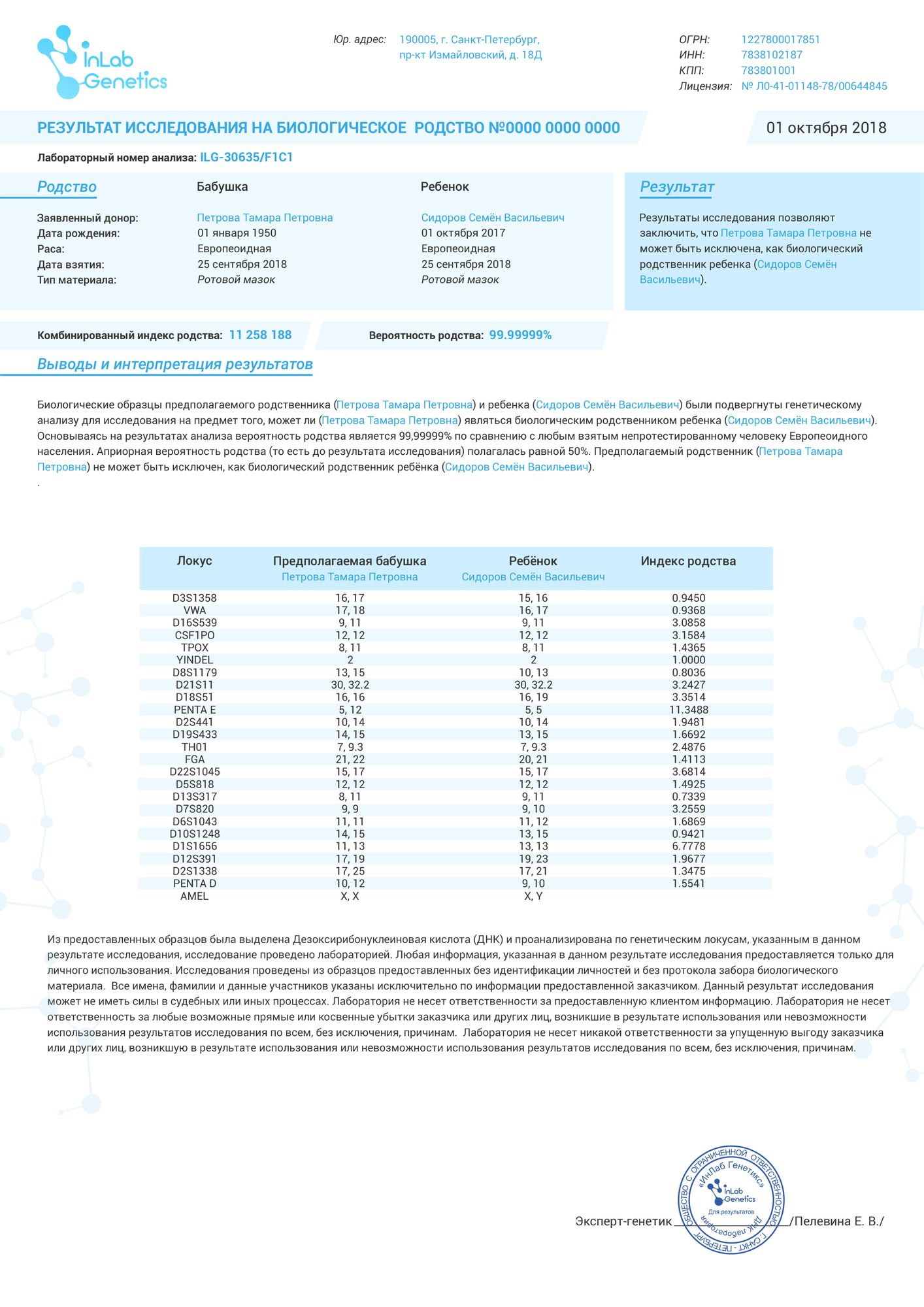 ДНК тест установление родства бабушка/дедушка - внук/внучка